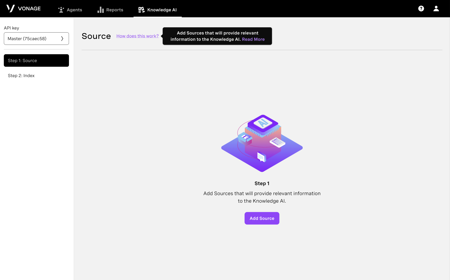 When **collaborating in teams**, ensure all relevant users have access to the correct API keys. Sources and Indexes are created at the account level and are only available to Virtual Assistants (VAs) under the same API key.&#x20;