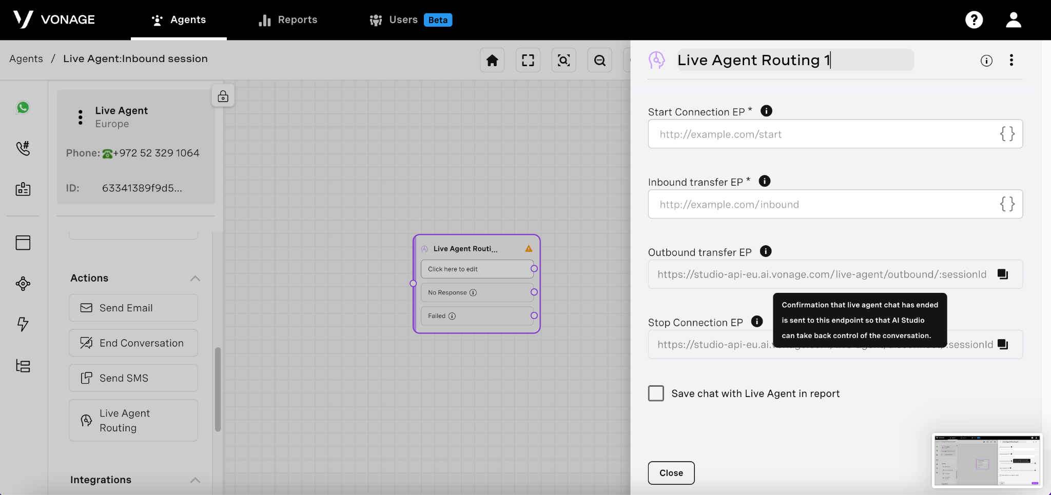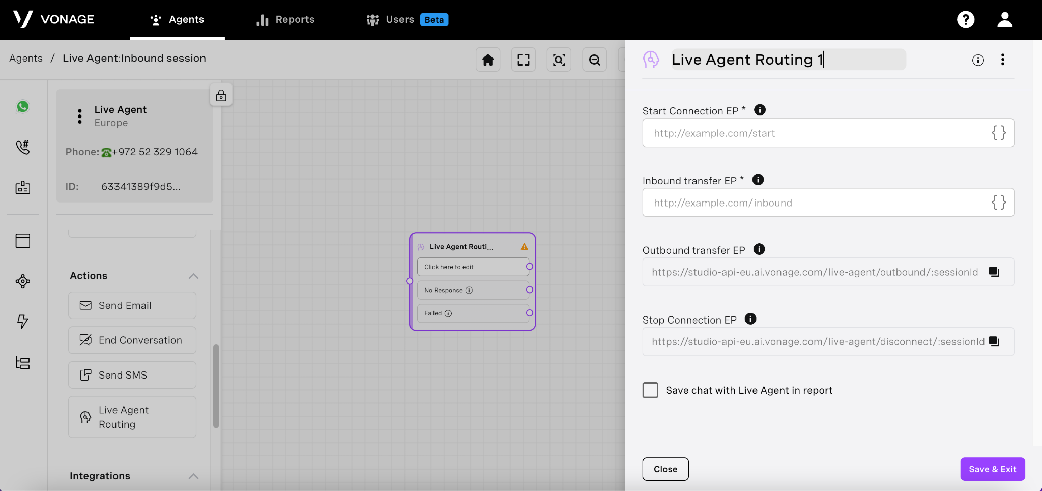 <mark style="color:green;">`POST`</mark> `https://studio-api-eu.ai.vonage.com/live-agent/outbound/:session_id`
